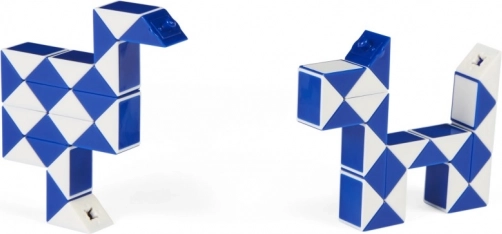 Ez a legendás RUBIK kirakó végtelen kombinációt kínál a két kígyónak (2× 24 hasáb) köszönhetően, amelyeket össze lehet kapcsolni. A rugalmas szegmensek könnyen forognak, és lehetővé teszik az áramló és geometrikus formák megalkotását. A kék-fehér kivitel áttekinthető, a tartós műanyag pedig hosszú élettartamot és sima működést garantál.