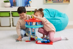 Helyezd el Chase-t a civil szerkóban a lift elején, és a hős-figurát hátul. Emeld fel a liftet, és figyeld, ahogy civil Chase átváltozik hős Chase-é. A torony tetején válassz egyet a három kétoldalas küldetéskártya közül, és derítsd ki, mi az adott napi feladat. Ha eljött a mentési akciók ideje, csúszd le a csúszdán egyenesen Chase rendőrautójába, és indíts akciót az autó kilövő gombjával. Még több szórakozásért gyűjtheted a többi kölyköt mint Marshall, Skye és Rubble a járműveikkel együtt.