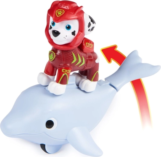 Rögzítsd Marshallt a delfin hátuszonnyához, told előre a delfint,