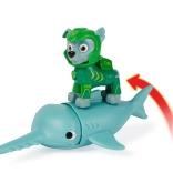 Rocky vadonatúj neoprénben és hűséges barátja, a fűrészhal. Ültesd Rockyt a fűrészhal hátán lévő uszonyra, told előre a fűrészhalat, hogy aktiváld a fejének mozgását, és indulj mentőakcióra. 3 éves kortól ajánlott.