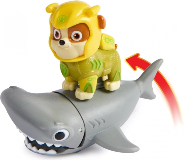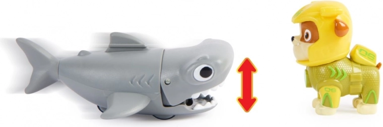 Rubble vadonatúj neoprénben és hűséges barátja, a pörölycápa. Ültesd Rublit a pörölycápa hátán lévő uszonyra, told előre a pörölycápát, hogy aktiváld a harapó mozdulatait, és indulj mentőakcióra. 3 éves kortól ajánlott.
