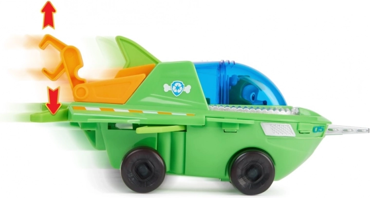 Helyezd Rockyt a pilótafülkébe, és aktiváld a mentőüzemmódot. Használd a kihúzható uszonyokat és a hátsó, víz alatti markolókart. 3 éves kortól ajánlott.