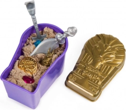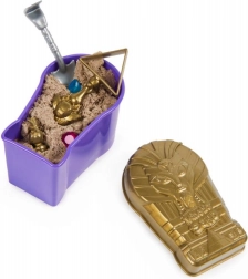 Áss és tárj fel ereklyéket, drágaköveket és a múmia titkait. Minden csomag a három figura egyikét rejti, valamint izgalmas hajszát az aranyérme után. A formázható homok kellemesen tartja az alakját, és végtelen kreatív játékra hív.