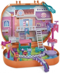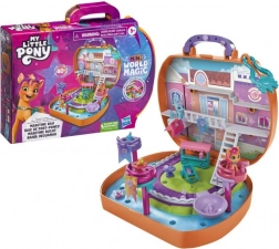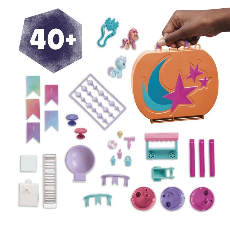 Alkoss egy világot varázslatos mini barátokkal egész Equestriából! A My Little Pony Mini World Magic készletek kis jelenetekből és a My Little Pony: Tell Your Tale sorozat által ihletett, bájos figurákból állnak. Ez a Compact Creation szett két, 1 hüvelyk magas, aranyos figurát tartalmaz: Sunny Starscoutot és Choco Cozyt! Több mint 40 darabbal érkezik a Maretime Bay jelenet testreszabásához. Építsd fel a világot kerítésekkel és lépcsőkkel, állítsd össze Sunny smoothie-kocsiját, és akaszd fel a textil zászlókat. Csatlakoztasd a kiegészítőket és a jelenetépítő elemeket a játékkészlethez, hogy mini világot hozz létre, majd az mellékelt matricalappal tedd egyedivé a jelenetet. Helyezd a drágakő-kiegészítőket a szűrőbe, és adj hozzá hideg vizet a színváltozáshoz. Képzeld el, hogy kincset találsz a parton Sunnyval és Choco Cozyval! Minden egy hordozható bőröndben tárolható, így útközben is szórakoztató. Ez a játék nagyszerű ajándék ünnepre vagy születésnapra 5 éves kortól!