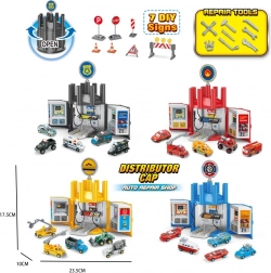 Fedezd fel a javítás és karbantartás világát ezzel a részletes gyerek autószervizzel. A szett tartalmaz egy kisautót és közlekedési táblákat, amelyek valósághű hangulatot adnak a játéknak, és lehetővé teszik a gyerekeknek, hogy saját műhelytörténeteket alkossanak. Az intuitív elemeknek köszönhetően a játék egyszerű, és ösztönzi a fantáziát.