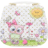 Ez a fehér, bagolymintás táska tökéletes kiegészítő a kis hölgyeknek. Kompakt méreteinek hála kényelmesen hordható, és elfér benne minden apróság, amit a gyermek magánál szeretne tartani – zsebkendő, kis játékok vagy a sétán talált kincsek.