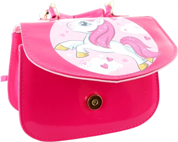 Aranyos, rózsaszín gyermek táska unikornis mintával, ideális a kis divatrajongóknak. Kompakt méret, kényelmes vállon hordás és fényes felület, amely első pillantásra magára vonja a figyelmet. Biztonságos záródás és praktikus belső tér apróságoknak, játékoknak és kincseknek. Korosztály: 3+.