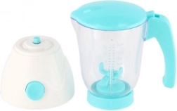 Ez a gyerek műanyag turmixgép vonzó türkiz-fehér színben valósághű főzési élményt nyújt. A funkcionális, levehető kehelynek és a mérőbeosztásoknak köszönhetően a gyerekek valóban önthetnek vizet a turmixgépbe, és utánozhatják turmixok vagy levesek készítését. A hangeffektek és fények növelik a játék hitelességét, és lekötik a kis szakácsok figyelmét.