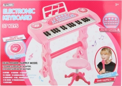 Rózsaszín zongora gyerekeknek adapterrel, amely széles körű zenei lehetőségeket kínál. Lehetővé teszi a klasszikus dallamok lejátszását, különféle dallamos aláfestéseket, különböző hangszerek kiválasztását és még állathangokat is. Tökéletes a gyerekek zenei képességeinek fejlesztéséhez.