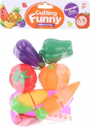 Szórakoztató műanyag zöldségszeletelő készlet kis szakácsoknak. Az egyes darabok belül tépőzárral kapcsolódnak, így újra és újra felvághatók és összekapcsolhatók. Remek játék a finommotorika fejlesztésére és az élelmiszerekkel való ismerkedésre. A csomagban összesen 14 darab található.