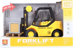 Szórakoztató és élethű elemes targonca 1:16 méretarányban, amely örömet szerez minden kis sofőrnek. Gombnyomásra világít és hangokat ad ki, az AG13/LR44 elemek a csomagban találhatók. 3 éves kortól ajánlott.