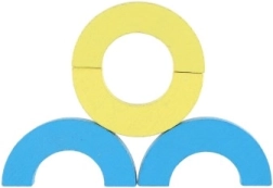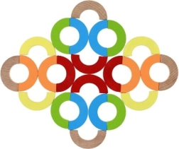 Ez a sokoldalú fa mozaik végtelen játéklehetőséget kínál – tornyok és hidak építésétől a szimmetrikus minták kirakásán át az egyensúlyozó feladatokig. A masszív, simára csiszolt, élénk színű elemek játékra csábítanak, és fejlesztik a koncentrációt valamint a szem–kéz koordinációt.