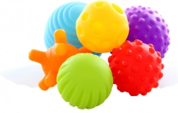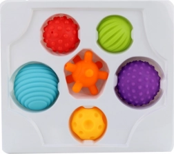 Minden labda eltérő felületű – bordázott, pöttyös vagy rovátkolt – ami stimulálja az érzékeket és felkelti a kíváncsiságot. Könnyen tisztíthatók, tartós anyaguknak köszönhetően ideálisak a mindennapi játékhoz otthon és útközben is.