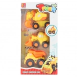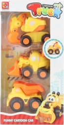 A csomagban három kedvelt gépet talál – egy kotrógépet, egy rakodót és egy billenőkocsit. Minden jármű lekerekített formájú, kisgyermekek számára megfelelő, és biztonságos játékra alkalmas 12 hónapos kortól.