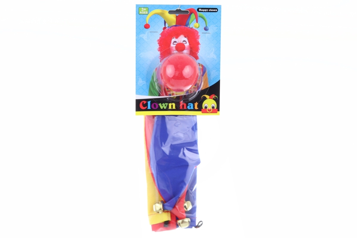 Ez a színes szett pillanatok alatt bájos bohóccá változtat bárkit. A feltűnő színekben pompázó, fém csengőkkel díszített puha anyagú sapka játékos hanghatást ad a jelmezhez, a piros habszivacs orr pedig könnyen feltehető és kényelmesen a helyén marad.