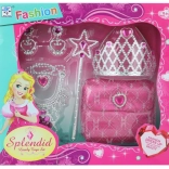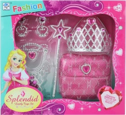 A kis hercegnőknek szánt szépségkészlet tartalmaz egy kb. 13 x 12 cm-es táskát, koronát, pálcát, nyakláncot és fülbevalót. A csomagolás mérete kb. 30,5 x 28 x 6 cm. Ajánlott életkor: 3+
