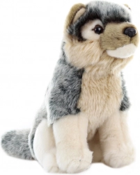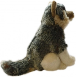 Plüss ülő farkas, mérete kb. 20 x 24 x 11 cm (farok nélkül). A farok hossza kb. 9 cm. Kor: 0+
