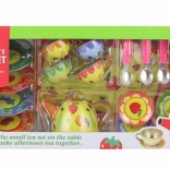 A gyümölcs- és virágminták játékosságot kölcsönöznek a szettnek, és közös teázásra, valamint a fantázia fejlesztésére ösztönöznek.