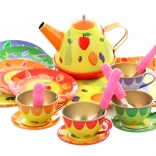 A színes gyermek bádog teáskészlet remek választás minden kis házigazdának. A fém kivitel könnyű, ugyanakkor elég tartós a mindennapos játékhoz. A gazdag felszereltségnek köszönhetően a gyerekek könnyedén rendezhetnek saját teadélutánt barátoknak és plüss vendégeknek.