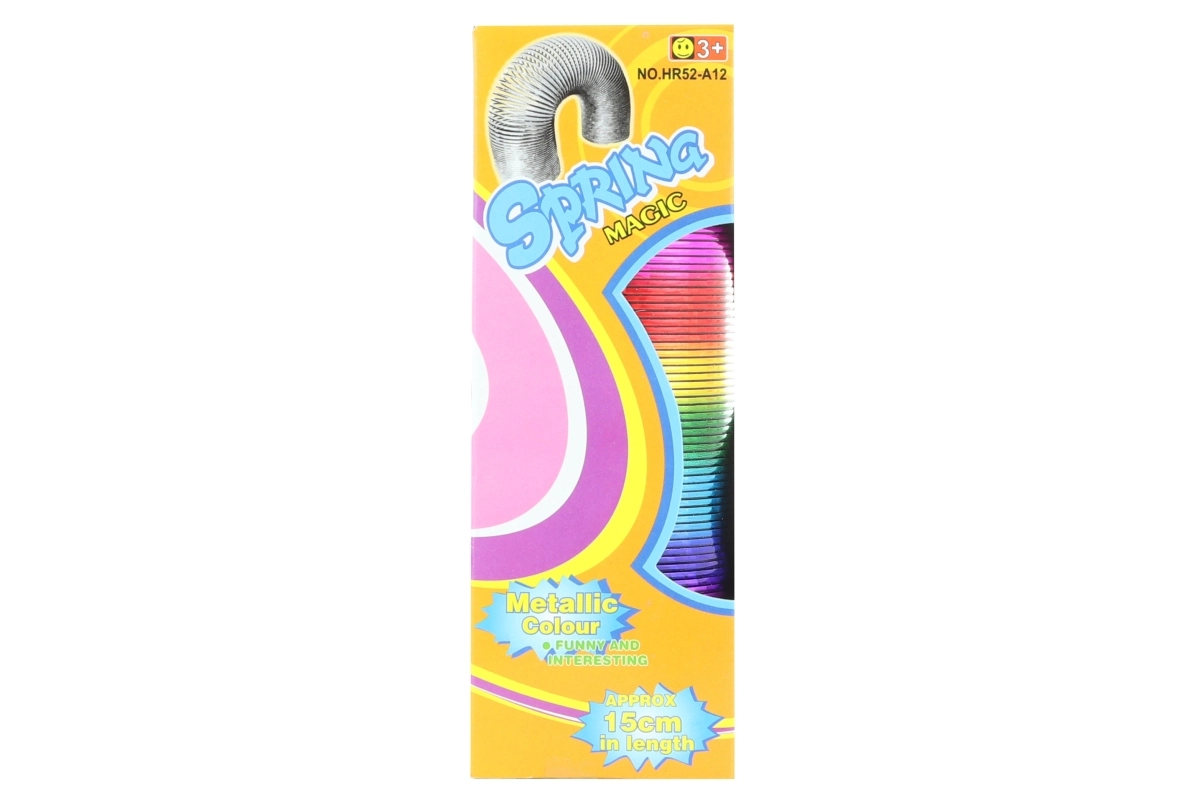 A szivárványos műanyag rugó klasszikus játék, amely örömet szerez gyerekeknek és felnőtteknek egyaránt. Színes megjelenése felkelti a figyelmet, mozgásra és kreatív játékra ösztönöz. A rugó könnyedén gördül a lépcsőkön, nyújtható és visszatér eredeti formájába, ami relaxáló és szenzoros élményt nyújt.
