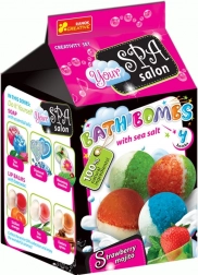A fürdőbombák lágyítják a vizet és ápolják a bőrét. Amikor a bombát a vízbe dobja, pezsegni, zúgni kezd, és csodálatos aromát áraszt. Ezeknek a bombáknak köszönhetően a fürdés remek szórakozás lesz. A csomag mindent tartalmaz 4 bomba elkészítéséhez (szódabikarbóna, citromsav, természetes olaj, tengeri só, színezék, kesztyű stb.). A csomag mérete 11,5 × 11,5 × 20 cm. Korosztály: 9+. EURÓPÁBAN KÉSZÜLT.