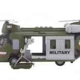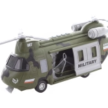 A valósághű, 1:16 méretarányú katonai helikopter minden kis pilótának örömet szerez. Gombnyomásra felvillan és autentikus hangokat ad ki. A tápellátást 3× AG13/LR44 elem biztosítja, amelyek a csomag részét képezik. Ideális ajándék 3 éves kortól.
