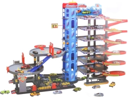 Ez a tágas, többemeletes garázs órákon át tartó kreatív játékot kínál. A hat szintet rámpák és felhajtók kötik össze, melyeknek köszönhetően az autók versenyezhetnek, parkolhatnak és biztonságosan közlekedhetnek a szintek között. A tetőn lévő heliport új dimenziót ad a játéknak, és támogatja a városi történetek megalkotását.
