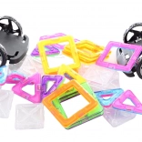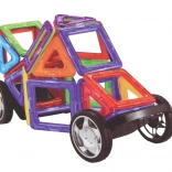 A készlet színes mágneses formákat és kerekeket tartalmaz, amelyek különféle szerkezetek építését teszik lehetővé, fejlesztve a térbeli képzelőerőt.