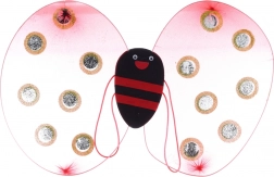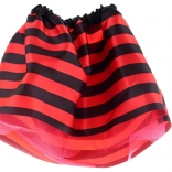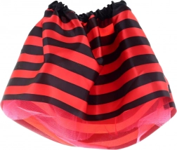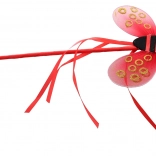 A szett részei: áttetsző rózsaszín-piros szárnyak csillámos pöttyökkel, elasztikus, piros-fekete csíkos szoknya, rugalmas csápos fejpánt és hozzáillő, szalagos pálca. A méretezés 3 éves kortól ajánlott; a csomag mérete kb. 49 × 57 cm.