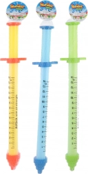 Szórakoztató, 54 cm hosszú, injekciós fecskendő formájú műanyag vízipumpa, amely végtelen nyári vízi mókát kínál. Ideális kertbe, medencéhez és strandra – az egyszerű feltöltés és az erős vízsugár örömet szerez a 3 éves kortól kezdődő gyerekeknek.