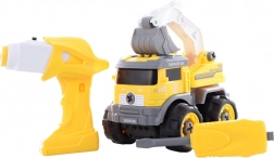 Szórakoztató és kreatív készlet kis technikusoknak: csavarozható, távirányítós kotrógép, amelyet könnyű szétszedni és újra összerakni. A fúróból kivehető motor behelyezése után a jármű előre és hátra irányítható. A játék ráadásul képes az autót robottá alakítani, hangokat ad ki és világít. Ideális a finommotorika és a műszaki gondolkodás fejlesztésére 3 éves kortól. Csavarozás és építés, távirányítás, robottranszformáció, fény- és hangeffektek.