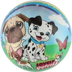 Szórakoztató gumilabda aranyos kutyás mintával, 23 cm átmérővel, amely örömet okoz a kis sportolóknak és az egész családnak. Könnyű, tartós és könnyen tisztítható – elég leöblíteni vízzel. Remek szabadtéri játékhoz, fejleszti a mozgáskészségeket és támogatja a aktív szórakozást 3 éves kortól.