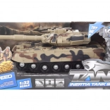 Ez a valósághű hatású, elemes tank rengeteg szórakozást kínál a gyerekeknek otthon és a szabadban egyaránt. A lendkerék révén a jármű egyenletesen indul, és a kicsi kezek számára is könnyen kezelhető. A tank kompakt méretei megkönnyítik a hordozást és a tárolást.