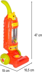 Ez a málna színű gyermek állóporszívó ideális játék a kis házi segítők számára. A fény- és hangeffekteknek köszönhetően úgy hat, mint egy valódi készülék, és a gyerekeknek azt az érzést adja, hogy részt vesznek a mindennapi tevékenységekben. Belül színes golyók találhatók, amelyek működés közben felemelkednek és leesnek, még vonzóbbá téve a játékot.