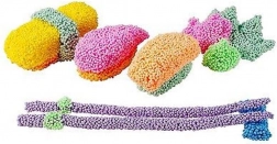 A PlayFoam könnyű, formázható anyag apró habgolyócskákból, melyeket speciális kötőanyag kapcsol össze. Ennek köszönhetően nem esik szét, nem tapad a bútorhoz vagy szőnyeghez, és a nagyobb alkotások is megtartják formájukat. Az egyes színek ügyes használattal ismét szétválaszthatók, az anyag nem szárad ki, így a móka sosem ér véget.