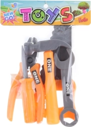 Szórakoztató gyermek szerszámkészlet kis barkácsolóknak 3 éves kortól. A csomag alapvető szerszámokat tartalmaz a szerelősetthez: kalapács, villáskulcs, csavarhúzó, fogó és fűrész. A kompakt, tasakos csomagolás ideális utazáshoz és otthonra is.