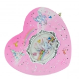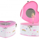 Ez a bájos, szív alakú zenedobozos ékszertartó tökéletes hely a gyűrűk, fülbevalók és apró kincsek számára. A kulcs felhúzása után dallam szólal meg, és a kis balerina elegánsan forog a tükör előtt. A rózsaszín árnyalatok és a finom motívumok dizájnja egyaránt elbűvöli a gyerekeket és a felnőtteket.