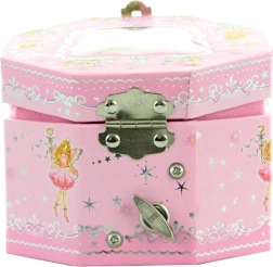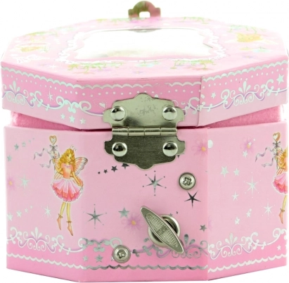 Ez a bájos, rózsaszín, mesemotívumos zenélő ékszerdoboz tökéletes hely gyűrűk, fülbevalók és más apróságok tárolására. A kulcs elfordítása után a balerina kecsesen forog a tükör előtt, és a doboz gyengéd dallamot játszik.
