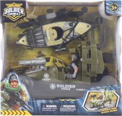Ez a katonai készlet minden kis kalandvágyó és akciókedvelőt boldoggá tesz. Műanyag csónakkal és kajakkal van felszerelve, amelyek sok vízi és szárazföldi szórakozást biztosítanak. A katona figura további védekező elemmel gazdagítja a játékot.