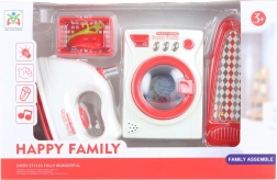 Fedezze fel a szórakoztató gyerek háztartási készülék szettet Happy Family néven, amely játékos formában hozza közelebb a gyerekekhez a házimunkát. A készlet tartalma: mosógép, vasaló, vasalódeszka és szennyeskosár. A valósághű elemek, fények és hangok támogatják a képzelet fejlődését és a szerepjátékot. Ideális 3 éves kortól.