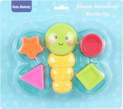 Ez a kedves, pillangó alakú formaberakó remek fejlesztő játék a legkisebbeknek. A gyerekek játék közben tanulják meg felismerni a formákat és színeket, gyakorolják a türelmet és a koncentrációt. A masszív műanyag kivitelnek köszönhetően a pillangó strapabíró, és könnyen tisztán tartható.