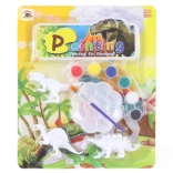 - 3 műanyag dinoszaurusz figura, 6 festék, 1 ecset, 1 paletta