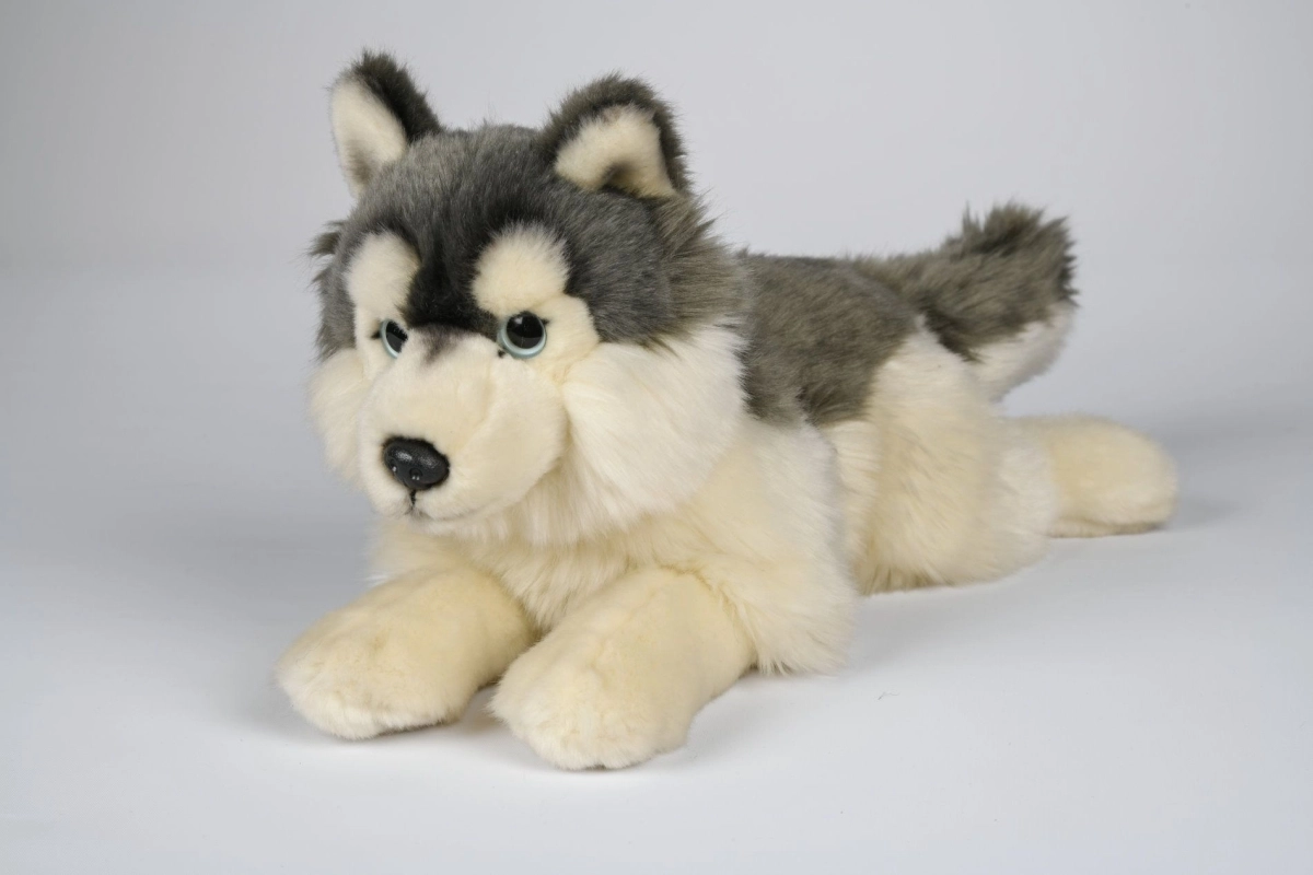 Aranyos, körülbelül 35 cm-es plüss husky, ideális ölelgetni valónak gyerekeknek és állatkedvelőknek. Puha, selymes tapintású, és készen áll a végtelen ölelésre. Remek ajándék bármilyen alkalomra, valamint dekoráció a gyerekszobába. Pihe-puha plüss, élethű megjelenés és praktikus, 35 cm-es méret a könnyű hordozhatóságért és játékért.