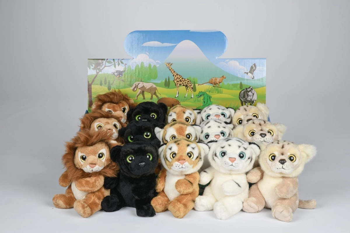 Fedezze fel a kompakt, 15 cm-es plüss ragadozók kollekcióját – oroszlánkölyök, tigris, fehér tigris vagy aranyos kiscica. Mindegyik darab finom, kellemes plüssből készül, és precíz tűzéssel díszített a biztonságos és tartós használatért. A könnyű töltetnek köszönhetően remekül lehet vele összebújni, és megnyugtató biztonságérzetet ad a gyerekeknek.