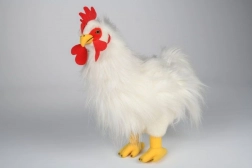 Vidám társ a gyermekeidnek, fehér színű plüss kakas, 42 cm-es méretben, amely minden gyerek számára alkalmas születésétől kezdve.