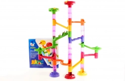 A golyópálya építőkészlet sokféle csövet, kanyart és lejtőt kínál, amelyeket könnyedén egymásba pattinthatsz, így egyedi pályákat hozhatsz létre. A 45 elemnek köszönhetően alacsony és többszintes összeállításokat is készíthetsz, és minden alkalommal más-más versenyt élhetsz át.