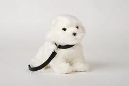 Ez a selymes tapintású plüss máltai kutyus kedves pofijával és kellemes anyagával rabul ejti a gyerekek szívét. Kompakt méretének köszönhetően jól illik a kis kezekbe, tökéletes ölelgetéshez és hordozáshoz. A csomag része a póráz, amellyel a gyerekek „sétáltathatják” a kutyust, így fejlesztve fantáziájukat és gondoskodó készségeiket.