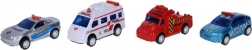 Négy kisautóból álló készlet visszahúzós funkcióval a szórakoztató autópályás vezetéshez. Minden kisautó hossza 7 cm. Tökéletes ajándék kis autórajongók és játékok kedvelőinek.