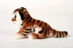 Plüss barna tigris, mérete kb. 25 × 19 × 11 cm (farok nélkül). A farok hossza kb. 12 cm. Korosztály: 0+