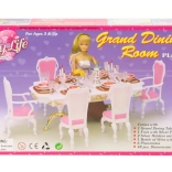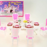 Készíts tökéletes vacsorát a babáknak a teljes Glorie készlettel. A nagy asztal és a hat szék bőséges helyet biztosít a vendégeknek, míg a részletes kiegészítők valósághű hangulatot adnak a játéknak. A készletet úgy tervezték, hogy a gyerekek könnyen használhassák, és fejlessze a fantáziát, a kommunikációt és a finommotorikát.